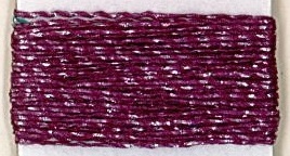Fil polyester texturé contenant une lame de lurex couleur argent.